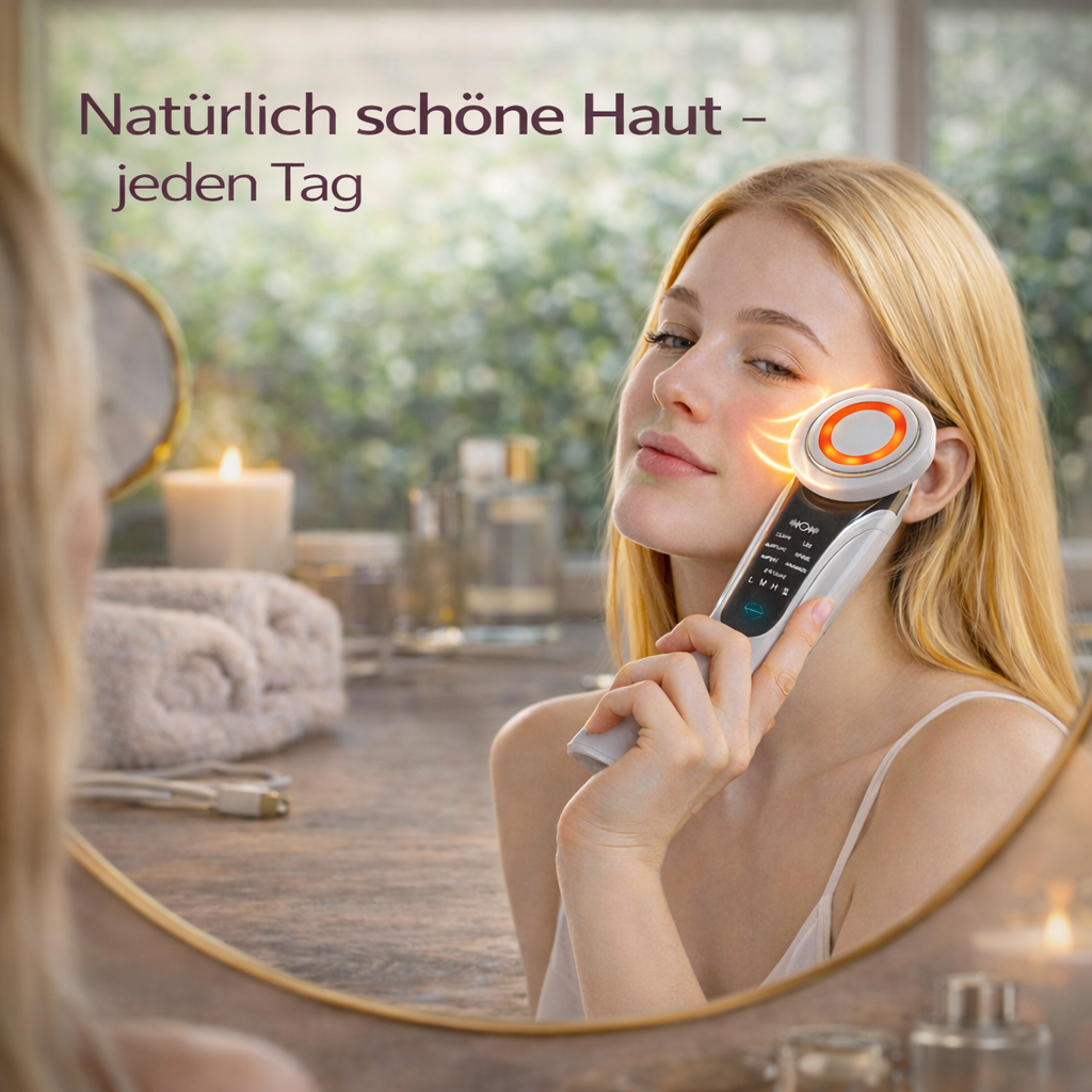 Kombiniert Lichttherapie, EMS und Wärme für straffere Haut, weniger Unreinheiten und frischere Augen in der täglichen Routine.