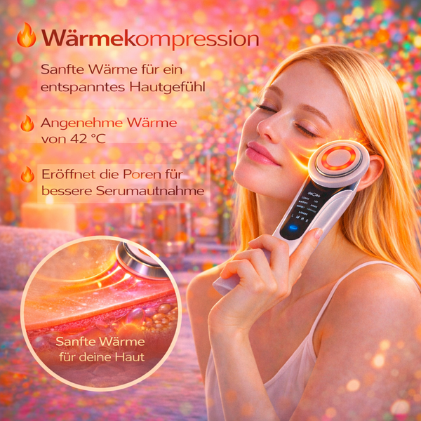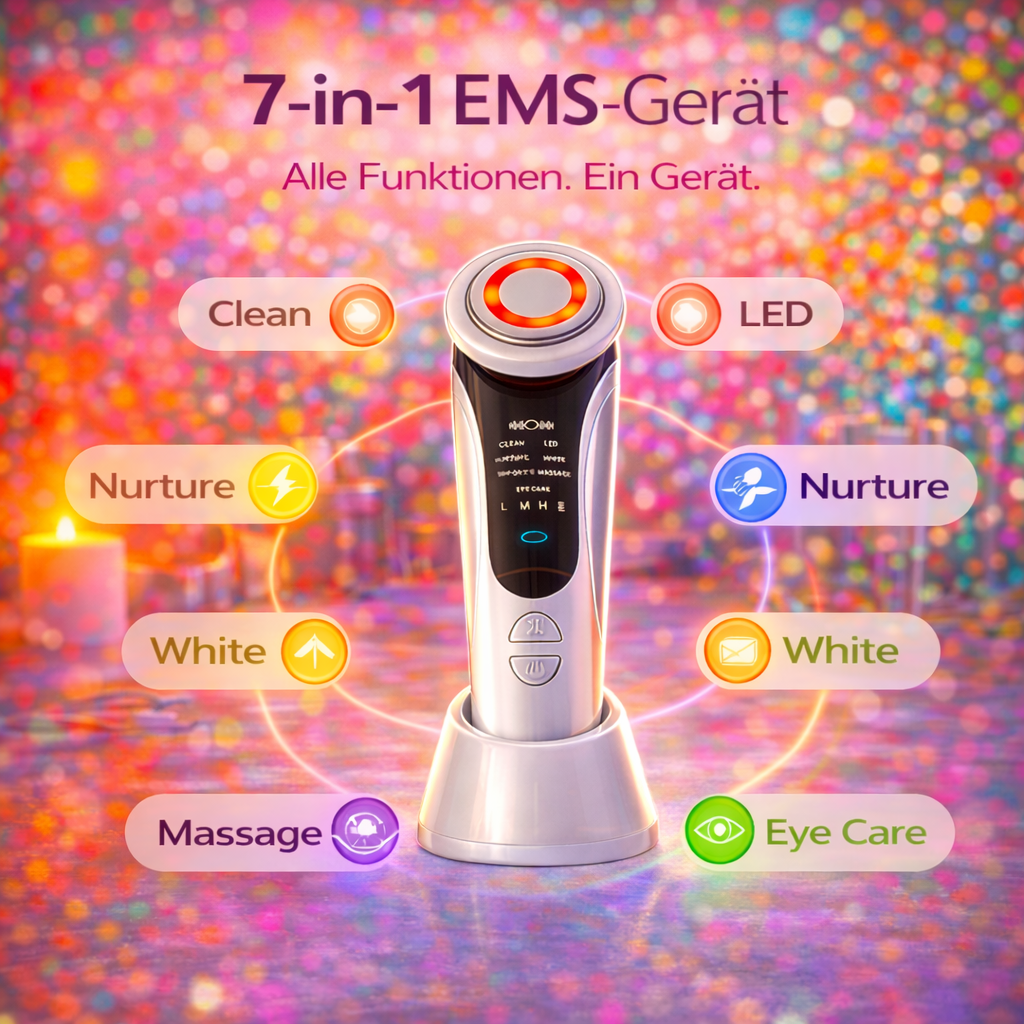 Kombiniert Lichttherapie, EMS und Wärme für straffere Haut, weniger Unreinheiten und frischere Augen in der täglichen Routine.