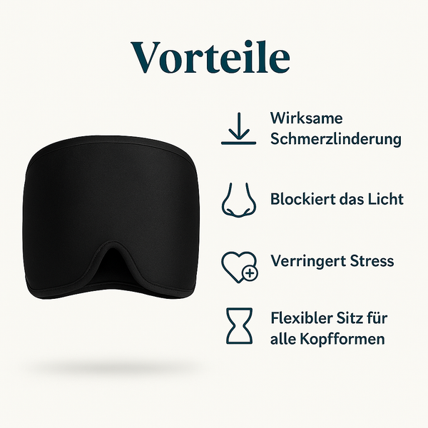 Lindert Kopfschmerzen und Migräne durch gezielte Kühltherapie und Dunkelheit.