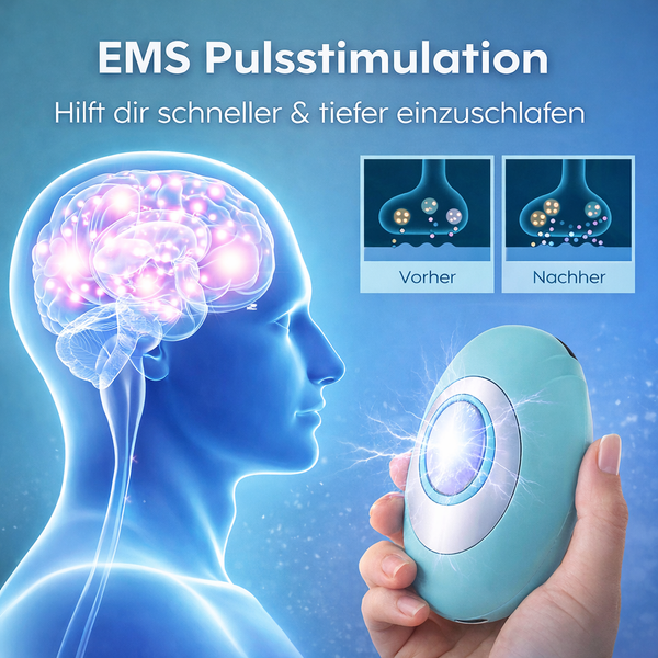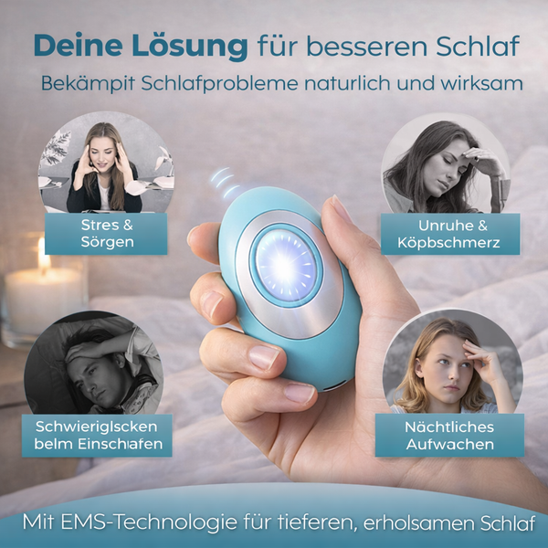 Viele liegen lange wach und denken. Das Gerät nutzt EMS-Mikrostrom, um Körper und Geist zu beruhigen, damit Einschlafen schneller gelingt und Morgen erholter beginnt.