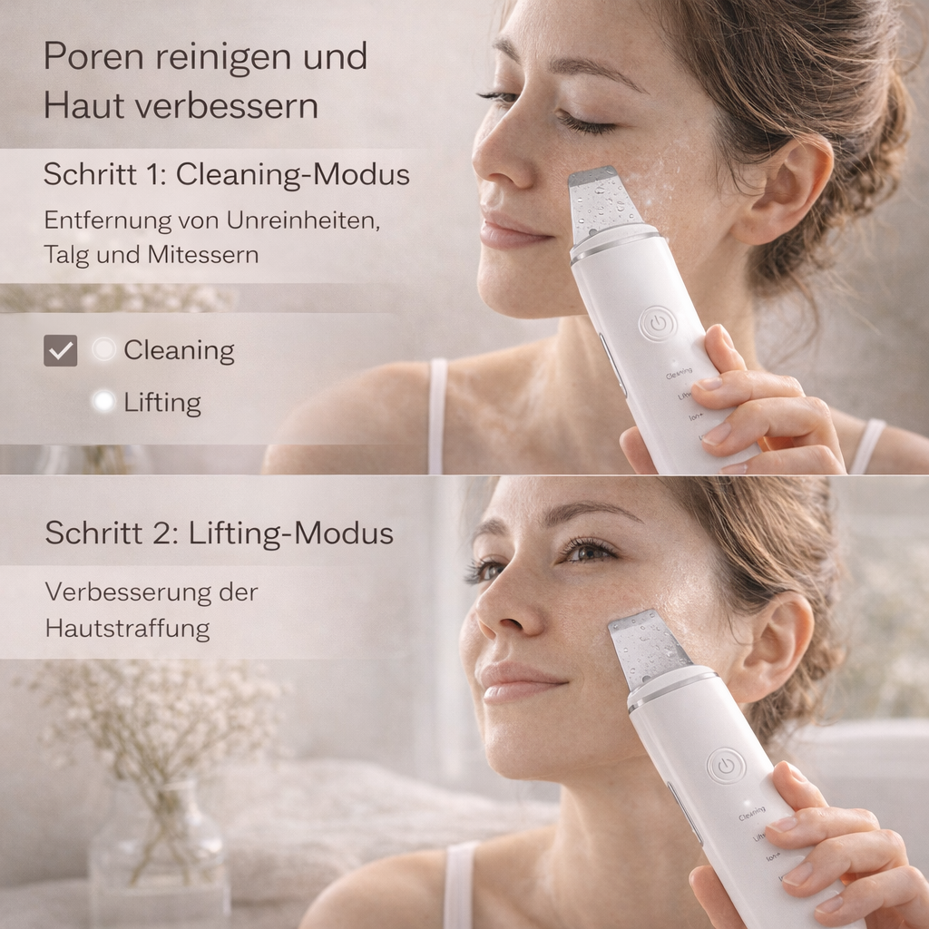 Unsere Haut kämpft täglich mit Mitessern, großen Poren, fettigen Bereichen und lästigen Unreinheiten. Diese Probleme entstehen tief in den Poren und führen zu einem unruhigen, glanzvollen Hautbild. Der GlowBlade Ultraschall-Gesichtsspatel setzt genau dort an: Er reinigt tiefenwirksam, löst Ablagerungen und bringt deine Haut sichtbar ins Gleichgewicht.